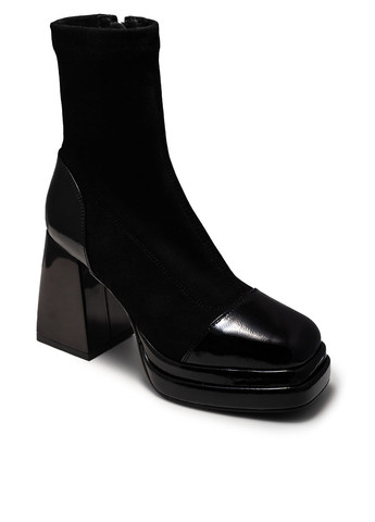 Черные ботинки-чулки с квадратным мысом. Замеры для 38 размера: высота ботинка: 14 см, высота каблука: 7 см.