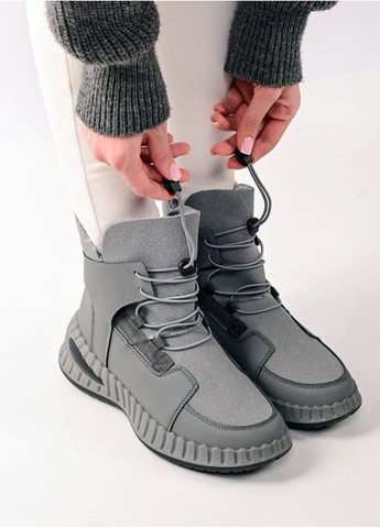 Цвет Серый / Состав верха Прессованная кожа / Сезонность Зима / Застежка Шнуровка