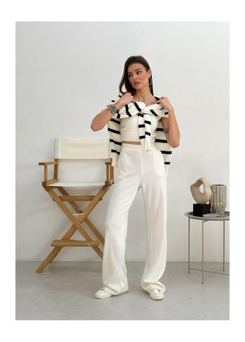 Удобные и практичные вязаные женские брюки. Обладают свободным кроем, высокой посадкой и эластичной резинкой на поясе, обеспечивая комфортную посадку на любой фигуре. Широкие штаны не сковывают движения. Оснащены удобными карманами. Изготовленные из теплого и практичного сочетания 50% хлопка и 50% акрила, эти брюки станут универсальным элементом вашего гардероба, идеально подходящий как для домашнего использования, так и для прогулок на улице, занятий спортом или создания образов в стилях кэжуал, классика и молодежный. Характеристики: Состав: 50% хлопок, 50% акрил Материал брюк: вязаные, акрил, хлопок Сезон брюк: зима, демисезон (весна/осень) Стиль брюк: кежуал, классика, молодежные, офисные Фасон брюк: на резинке, прямые, с высокой посадкой Принт брюк: однотонные Свойства: Теплые, удобные, универсальные, практичные, с карманами