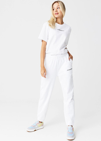 Цвет Белый / Материал Хлопок / Фасон Джоггеры / Высота посадки Высокая талия / Узор Надпись