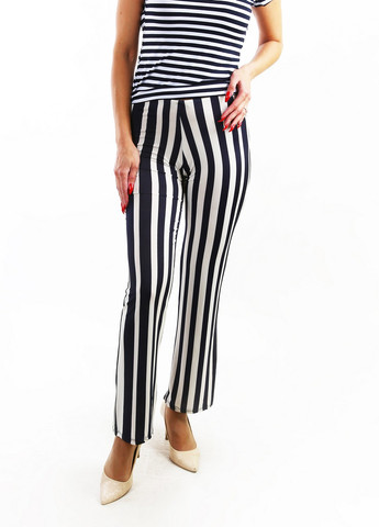 Стильные женские эластичные брюки в широкую полоску прямого кроя. Состав: 95% полиэстер 5% эластан. Замеры изделия: 42р-Полуобхват бедра 38см, Полуобхват талии 30см, Длина изделия 97см.