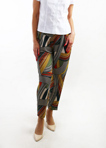 Стильні жіночі брюки виконані з легкої тканини .Злегка завужені до низу . Дві кишені, розташовані в бічних швах. Без застібки , на резинці . Склад :100% віскоза. Заміри виробу : 44р-Напівобхват стегона 47см , Напівобхват талії 35см , Довжина виробу 102см .
