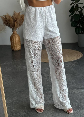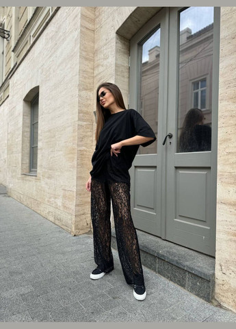 Цвет Черный / Материал Гипюр, Кулир / Фасон Прямые, Палаццо / Высота посадки Высокая талия / Узор Однотонный