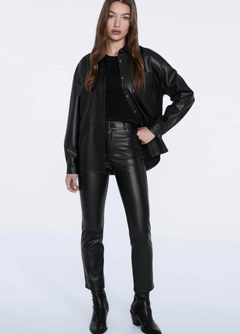 Цвет Черный / Материал Полиуретан / Фасон Зауженные / Высота посадки Средняя талия / Узор Однотонный