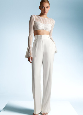 Сегодня и всегда – твой особый день, который стоит самого красивого наряда. Коллекция Flawless была создана, чтобы подчеркнуть внутреннее сияние и хрупкость, ведь именно в этом и есть твоя сила. Будь смела, будь непредсказуема, будь собой. Тебе все можно. Сатиновые штаны прямого кроя с моделирующими защипами. Высокая посадка и широкий пояс, есть боковые карманы.