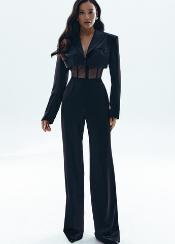 Цвет Черный / Материал Сатин / Фасон Прямые, Палаццо / Высота посадки Высокая талия / Узор Однотонный