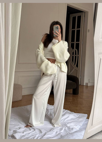 Цвет Молочный / Материал Сатин / Фасон Прямые, Палаццо / Высота посадки Высокая талия / Узор Однотонный