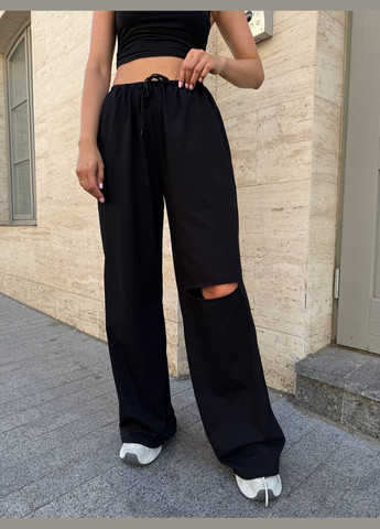 Цвет Черный / Материал Гипюр, Кулир / Фасон Прямые, Палаццо / Высота посадки Высокая талия / Узор Однотонный