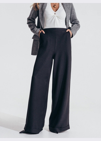 Цвет Темно-серый / Материал Акрил, Полиэстер, Шерсть / Фасон Палаццо / Высота посадки Высокая талия / Узор Однотонный