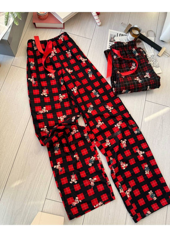 Цвет Зеленый / Материал Хлопок, Байка / Фасон Прямые / Высота посадки Средняя талия / Узор Новогодний