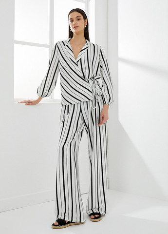 Чтобы образ был элегантным и женственным, следует придерживаться простого правила контрастов. Если брюки темного цвета – нужен верх светлого и наоборот. Если брюки однотонные, то можно подобрать блузу с мелким принтом или геометрическим узором.
