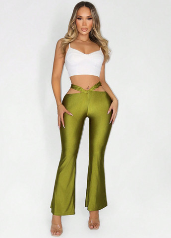 Актуальная модель по фигуре с брючинами прямого кроя, пояс на скрытой широкой резинке.