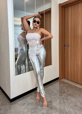 Нарядные женские брюки с люрексовой нитью ровного кроя с высокой посадкой, Esmara, Германия.