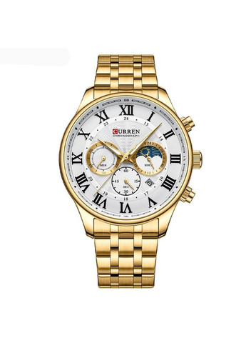 Часы Curren 8440 Silver-Gold-White – стильный вариант для мужчин. Корпус изготовлен из металла с элегантным золотистым оттенком, а стальной ремешок обеспечивает надежность и комфорт. Этот кварцевый хронограф оснащен функциями календаря, секундомера и подсветкой, что делает его идеальным для повседневного использования. Водонепроницаемость до 30 м позволяет не беспокоиться о влаге, а минеральное стекло защищает от царапин. Диаметр корпуса составляет 43 мм, а толщина – 11 мм, что придает часам уверенный вид. В комплекте с гаджетом идет 12-месячная гарантия. Curren 8440 – это удачное сочетание классики и современного стиля.