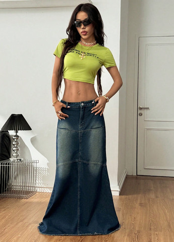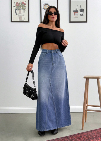 Женская джинсовая юбка Coolane. Эта джинсовая юбка предназначена для повседневной носки. Свободный крой и длина макси. Застёжка на пуговицу и молнию,есть карманы. Ткань не тянется. Рекомендуется машинная стирка или профессиональная химчистка.