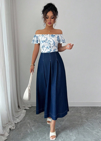 Цвет Синий / Фасон Годе / Высота посадки Средняя талия / Длина изделия Макси / Материал Хлопок, Джинс
