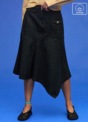 Цвет Комбинированный / Фасон А-силуэт / Высота посадки Средняя талия / Длина изделия Макси / Материал Хлопок, Джинс
