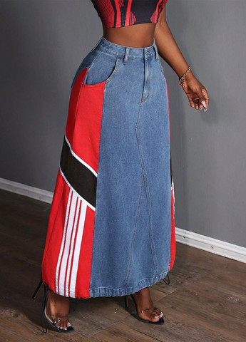 Длинная женская джинсовая юбка Slaydiva, повседневная. Эта джинсовая юбка подходит как для повседневной носки, так и для торжеств. Прямой крой и средняя линия талии. Юбка имеет карманы и застежку-молнию. Ткань – джинсовая ткань с разноцветными полосками. Без подкладки, классический крой. Инструкция по уходу: машинная стирка, не подвергать химчистке.