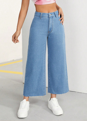 Цвет Голубой / Фасон Кюлоты, Укороченные / Высота посадки Средняя талия / Декор Без декора / Сезонность Демисезон