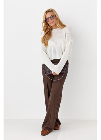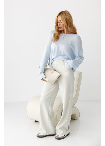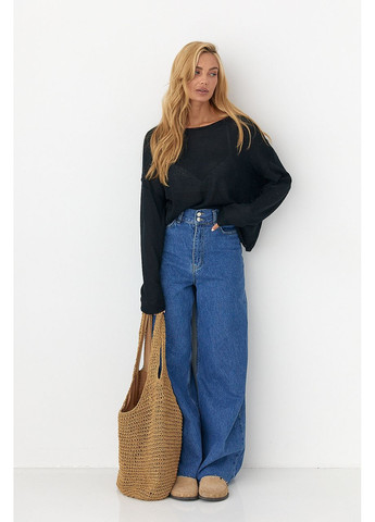 Джемпер легкой вязки – воздушная базовая вещь, сочетающая комфорт и утонченность. Модель имеет свободный крой с опущенными проймами, придающими силуэту расслабленный вид, и мягко спадающие вдоль рук длинные рукава.