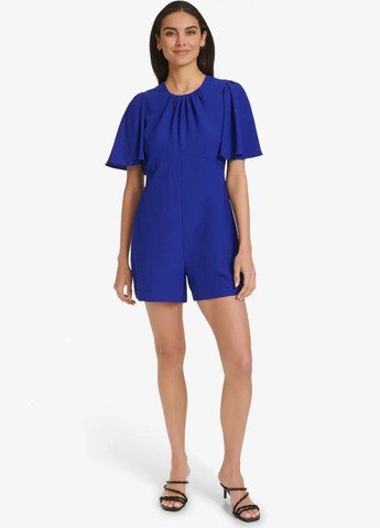 Женский комбинезон Calvin Klein. Классический короткий комбинезон без рукавов с v-образным вырезом. Дышащая ткань, мягкая, приятная к телу. Эластичная резинка на талии с завязками для комфортной посадки. Два кармана на талии. Фирменный логотип бренда на завязках и снизу. Однотонный цвет, модный и элегантный. Отличное качество.