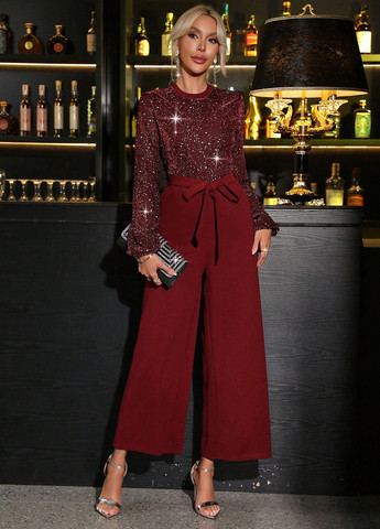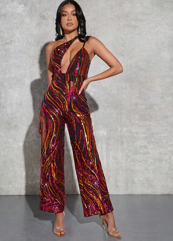 Этот гламурный комбинезон имеет широкие брюки, королевский синий цвет и короткие многослойные рукава. Он изготовлен из слегка эластичной ткани и имеет V-образный вырез. Комбинезон имеет пояс на талии, многоуровневые пласты и детали на запах для дополнительного визуального интереса. Это стильное изделие, доступное в обычном крое, идеально подходит для вечеринок или особых случаев.