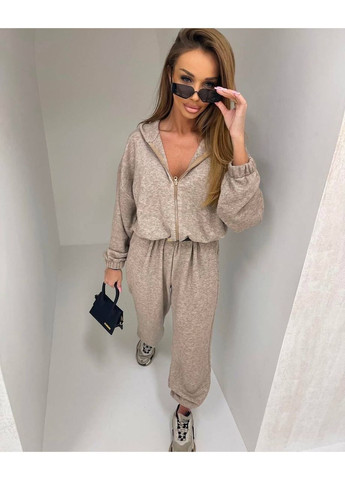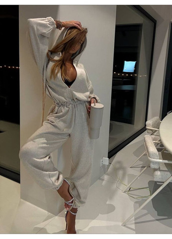 Верх оснащен капюшоном и удобной молнией, что позволяет регулировать глубину выреза и создавать как более спортивный, так и женственный образ. Завязка на талии помогает индивидуально настроить посадку, подчеркивая силуэт. Свободные брюки с комфортными манжетами обеспечивают свободу движений и придают комбинезону стильную непринужденность.