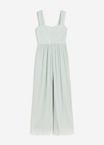 Комбинезон из плиссированного шифонового укропа с облегающим лифом. Вырез горловины в форме сердца, широкие бретели и скрытая молния с одной стороны. Широкие штанины с оверлоком по низу. Подкладка из джерси.