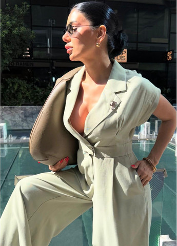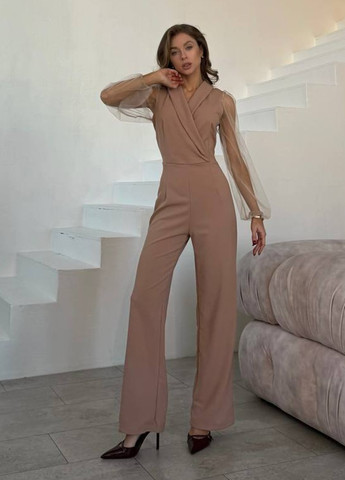 Утонченный комбинезон который идеально подчеркнет фигуру. Брюки свободного кроя, длинный рукав, V – образный вырез горловины.