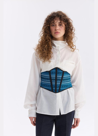 без косточек, моделирующий. обхват регулируется шнуровкой на спине, также имеет крючки-защелки спереди для удобства. материал: 80% коттон, 20% полиэстер.