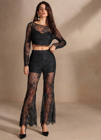 Цвет Черный / Фасон Брючный / Стиль Деловой, Кэжуал / Узор Однотонный / Материал Искусственный шелк, Кружево