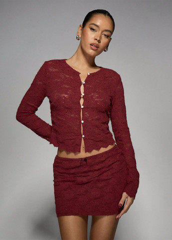 Пиджак имеет безупречный крой, подчеркивающий талию, а кружевные вставки придают нотку изысканности и загадочности. Легкий переливчатый блеск ткани Shovk Armani придает изделию дорогой вид, обеспечивая комфорт и приятные тактильные ощущения.