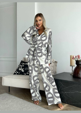 Женский юбочный костюм с блузой. Изготовлена из гофрированного сатина. Приятная на ощупь ткань, имеет хорошую эластичность и фактуру в рубчик. Блуза оверсайз кроя с цельнокроеным коротким рукавом без манжетов. Блуза имеет V-вырез воротника. Главная ее особенность это вшитый пояс на талии, который можно завязывать как спереди так и сзади. Благодаря чему можно драпировать ткань на блузе. Юбка с резинкой на талии, без застежек и высокой посадкой. Костюм без карманов.