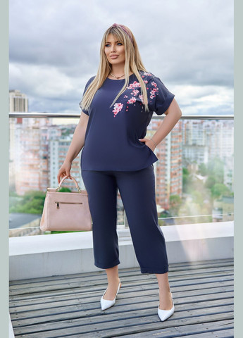 Наша новая модель костюма с укороченными брюками не оставит тебя равнодушной. Нежный принт на блузке делает этот образ неперевешенным. Цельнокроеный рукав с манжетами-отворотами и боковые разрезы добавляют легкости изделию. Укороченные брюки свободного кроя с манжетами имеют резинку на талии. По бокам есть удобные кармашки для самых важных вещей.