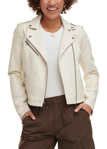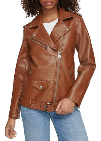 Женская куртка Levi´s. Женская современная асимметричная мотоциклетная куртка из искусственной кожи Levi´s. Водостойкая внешняя оболочка, что упрощает уход. Асимметричная застежка-молния по центру спереди с застегивающимися лацканами и погонами для дополнительной детализации. Рукава имеют регулируемые манжеты на молнии. Два нагрудных кармана на молнии, а также один боковой на молнии и один на кнопке. Искусственная кожа делает эту куртку незаменимой в гардеробе каждой женщины. Идеально подходит для перехода между сезонами или для использования в качестве наслоения. Отличное качество.
