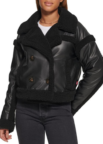 Женская куртка из экокожи Levi´s. Удобная и теплая курточка из мягкой и приятной на ощупь экокожи. Два кармана по бокам. Отделка из шерпы на воротнике, рукавах и спине, а также карманы с отделкой из шерпы. Внутри подкладка из мягкой теплой шерпы. Застегивается спереди на пуговицы. Отличное качество.