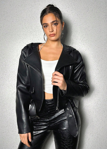 Эта куртка предназначена для повседневной носки. Она имеет дизайн с капюшоном и из искусственной кожи. Куртка имеет стандартный крой и рукав с приспущенным плечом. Она включает в себя шнурок, карман и застежку-молнию. Ткань средней эластичности, а подол имеет правильную форму.