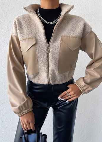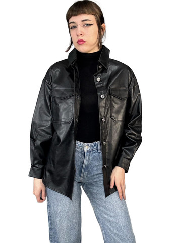 Женская куртка изготовлена из мягкой экокожи, которая хорошо себя ведет даже при длительной эксплуатации: не лопает, не шелушиться и не облазит. Внутри присутствует принтованная подкладка. Застегивается модель на молнию. Карманов и воротника нет. Круглый вырез горловины без воротника, прямой полуприталенный силуэт, застегивается на молнию, внутри на подкладке. Длина от плеча 54 см - 55 см. Длина рукава 58 см - 60 см.