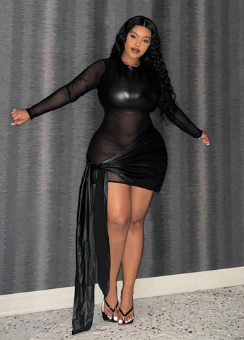 Материал Полиэстер, Экокожа / Цвет Черный / Фасон Футляр / Длина изделия Мини / Стиль Вечерний