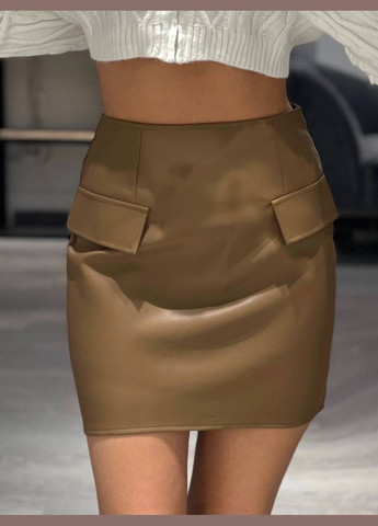 Цвет Коричневый / Высота посадки Средняя талия / Длина изделия Мини / Материал Экокожа