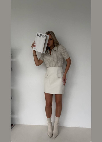 Цвет Молочный / Высота посадки Средняя талия / Длина изделия Мини / Материал Экокожа