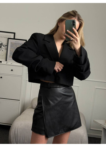 Цвет Черный / Высота посадки Средняя талия / Длина изделия Мини / Материал Экокожа