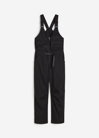 Комбинезон из ветроустойчивой, водоотталкивающей функциональной ткани, обеспечивающей сухость во время лёгкого дождя и защиту от ветра. Классический крой с регулируемыми эластичными подтяжками, V-образным вырезом, молнией спереди и частично потайным поясом на магнитной пряжке. Карманы с клапанами и карман на молнии на груди, диагональные передние карманы и большой карман с клапаном сзади. Прямые брюки с вытачками на коленях и потайной эластичной кулиской по низу.