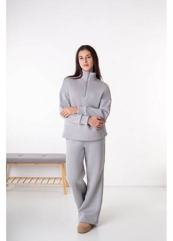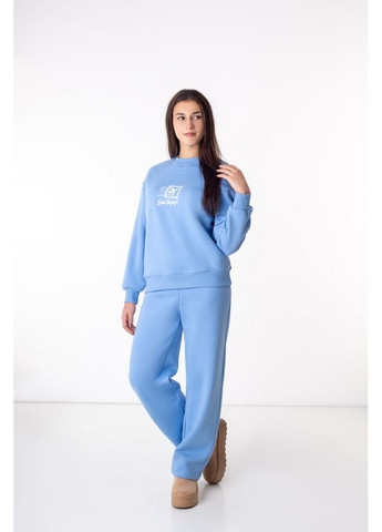 Стильный женский костюм из трехниточного футера с начесом, предназначенный для максимального комфорта и легкости. Комплект состоит из свитшота прямого свободного кроя и брюк из мягкой, гладкой ткани. Свитшот имеет опущенную линию плеча, эластичные манжеты и пояс, что обеспечивает удобную посадку и сохраняет форму изделия. Спереди расположен лаконичный принт, придающий образу индивидуальности. Брюки имеют прямую, немного свободную посадку, комфортный пояс на резинке и ровные аккуратные швы. Материал костюма приятен к телу, хорошо держит тепло, что делает его идеальным вариантом для прохладной погоды. Этот комплект сочетает практичность, стиль и удобство, создавая непринужденный образ. Холст: трехниточный футер с начесом. Плотность холста: 310 гр/м2. Состав: 85% хлопок, 15% полиэстер. Советы по уходу: стирать при температуре не более 30°C.