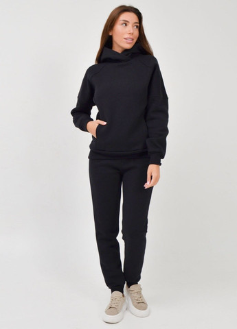 Женский однотонный спортивный костюм. Состоит из двух частей: тощие свободного кроя с карманом-кенгуру и удобные брюки на манжетах. Ткань – тринитка с начесом. Модель изготовлена из высококачественных материалов, что обеспечивает комфорт во время повседневной носки и занятий спортом.