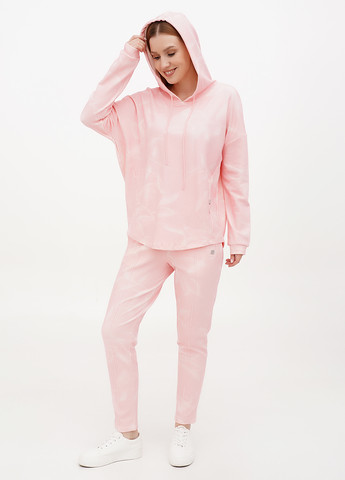 Бежевый спортивный костюм в стиле оверсайз, выполненный из трикотажа на флисе с принтом тай-дай. Верх с капюшоном, длинными рукавами, карманами и нижней кулиской. Брюки джоггеры с карманами, резинкой на поясе и низкими эластичными манжетами. Полуобхват: Кофта: Грудь: S(63), M(65), L(67), XL(69), Длина изделия - 66, Рукав - 56, Брюки: Талия: S(32-38), M(34- 40), L (36-42), XL (38-44), Бедра: S (51), M (53), L(54), XL(56), Длина изделия - 98, Длина по внутреннему шву - 71, Ткань: Низкая эластичность.