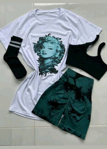 Стильный костюм с зелеными шортами в тай-дай стиле и удлиненной белой футболкой с принтом – яркий, удобный и трендовый комплект для летних образов. Идеально подходит для повседневной носки, отдыха, прогулок или активного досуга. Универсальный яркий костюм, сочетающий комфорт и эффектный внешний вид.