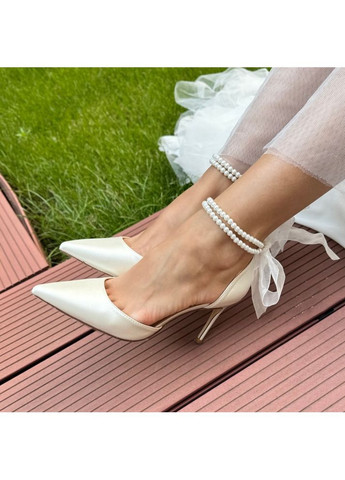 Женские туфли Свадебные атласные с ремешком с жемчугом 5 см