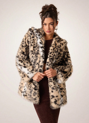 Женский полушубок Aloruh Oversize Fluffy Collar. Имеет теплый, пушистый воротник и свободный крой. Подходит для разных случаев, включая работу, путешествия и вечеринки. Имеет однобортную планку и обычный подол. Ткань не тянется.