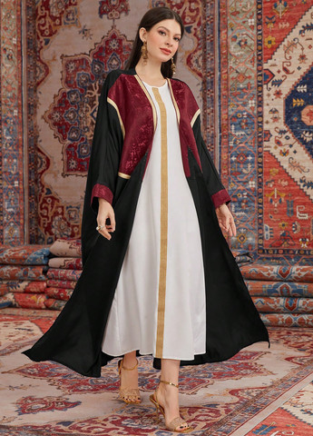 Эта накидка имеет серебристую металлическую обработку, контрастные детали из искусственного меха и перьев и застежку на пуговицах спереди. У нее длинные рукава, обычный крой, круглый вырез горловины и разрез подола. Одежда изготовлена из ткани с покрытием средней эластичности и подходит для весенне-осенних вечеринок.